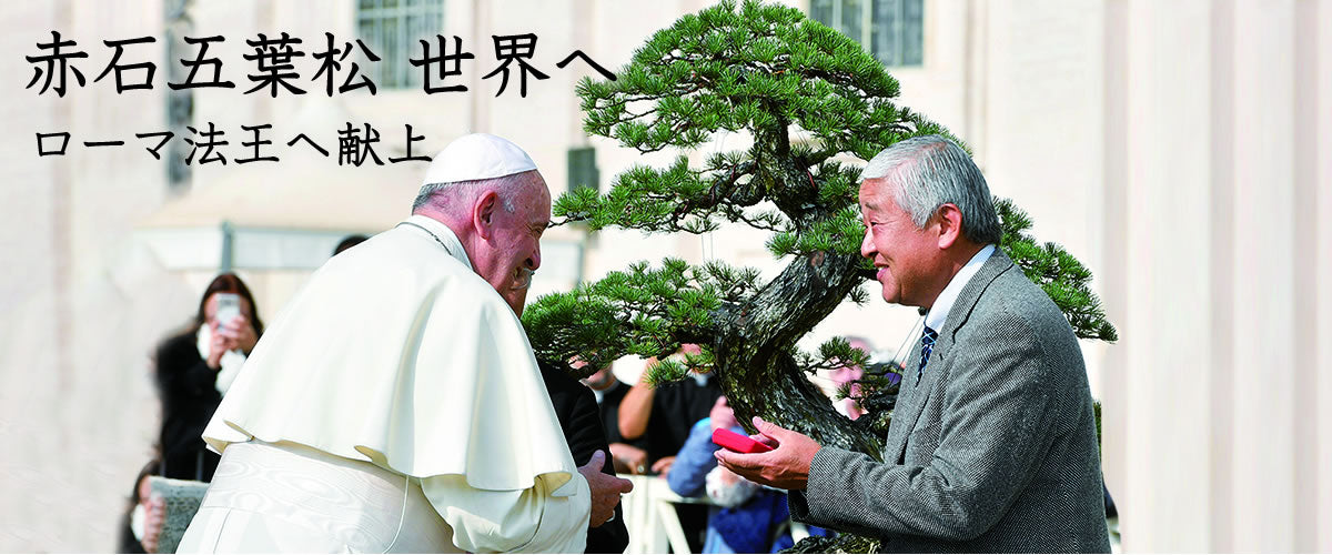 愛媛県四国中央市で作られる盆栽「赤石五葉松」は、瀬戸内海に面した赤石山に千古から自生する五葉松の原種を守りながら盆栽に仕立て生み出されたブランド盆栽です。